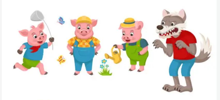Es war einmal eine alte Schweinemutter, die hatte drei kleine Schweinchen, die aßen und aßen, soviel sie nur konnten. Und als sie so groß waren, dass sie in dem Haus, in dem sie wohnten, keinen Platz mehr finden konnten, sagte die Mutter zu ihnen: "Ihr könnt jetzt nicht mehr bei mir bleiben, jedes muss ein Haus für sich selber haben." Und sie schickte sie in die weite Welt hinaus.