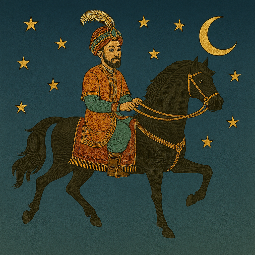 Kamar al-Akmar, der Sohn des Königs, besteigt das Ebenholzpferd und wird durch eine List des persischen Weisen in die Lüfte geschickt. Er entdeckt die Mechanik des Pferdes und landet in einer fremden Stadt.