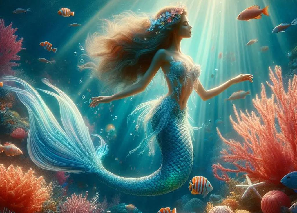 „Wenn ihr euer fünfzehntes Jahr erreicht habt“, sagte die Großmutter, „dann sollt ihr die Erlaubnis erhalten, aus dem Meer emporzutauchen, im Mondschein auf die Klippe zu sitzen und die großen Schiffe vorbeisegeln zu sehen. Wälder und Städte werdet ihr dann erblicken.“